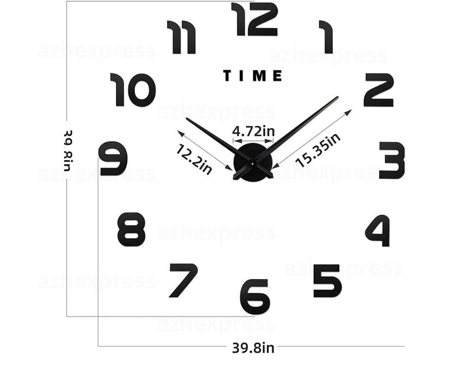 SIZE: Clock Size (normal configuration as shown in the pictures): Round Diameter from 80cm-120cm (DIY Size)  Minute hand: 33.5cm Hour hand: 27.5cm Centerpiece: 10cm