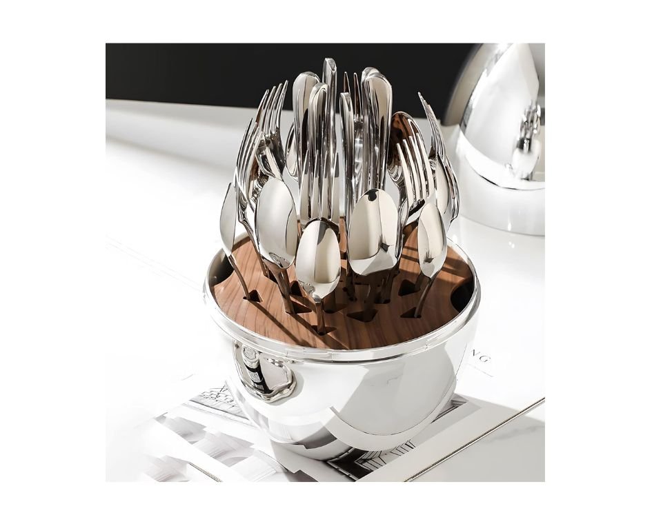 The set features an egg-shaped holder that not only keeps your tableware sanitary but also adds a touch of elegance to your dining table and kitchen. It’s built to last, thanks to its wear-resistant design.