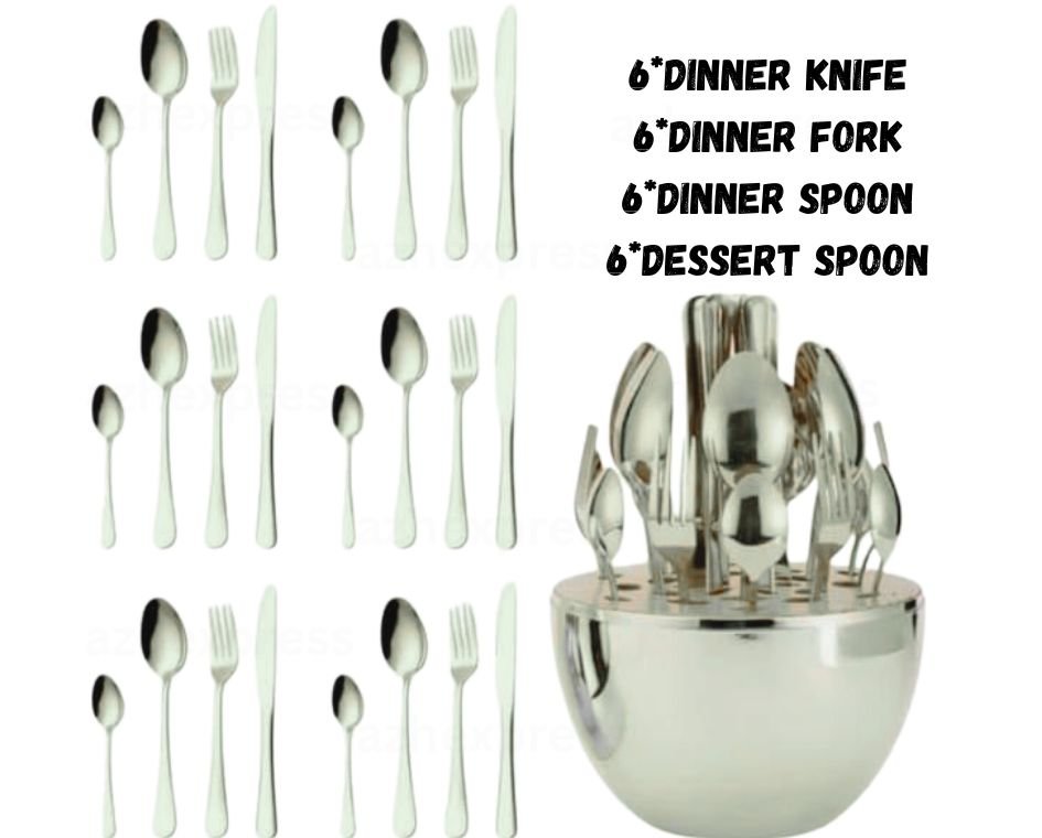 (6 fork spoon, 6 dessert spoon, 6 dinner spoon,dinner knife)
